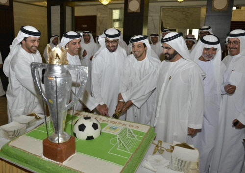 지난 12일 만수르의 형이자 아랍 에미리트 정치인인 모하메드(사진 만수르 오른쪽)는 동생 만수르가 팀의 잉글랜드 프리미어리그 우승을 축하하는 사진을 SNS에 공개했다.