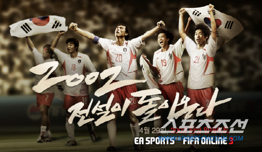한편 넥슨은 지난달 29일 'FIFA 온라인 3'에 신규전설 업데이트로 한-일월드컵 4강 신화의 주역 20인을 게임 내 추가했다. '전설2002'선수 20인의 선수 캐릭터 정보와 한-일월드컵 당시 모습은 'FIFA 온라인 3' 공식 홈페이지(fifaonline3.nexon.com)를 통해 확인할 수 있다. 남정석 기자 bluesky@sportschosun.com