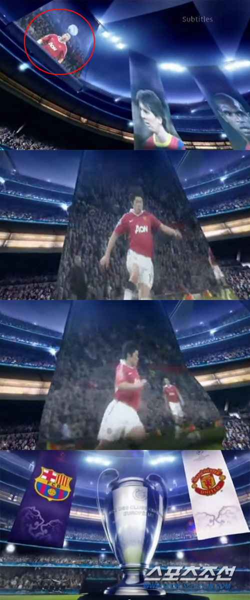 박지성은 맨체스터 유나이티드(이하 맨유) 소속이던 지난 2008-09시즌, 영국 런던의 웸블리 경기장에서 열린 UEFA 챔피언스리그 결승전에 출전했다. 당시 오프닝 영상에서 박지성은 세계 최고의 선수로 발돋움하던 리오넬 메시(27·바르셀로나)와 함께 소개돼 눈길을 끈다.