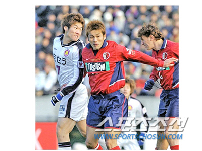 박지성 은퇴 기자회견 소식에 교토상가 옛 동료들 응원. 2003년 1월 1일 일왕배 결승전에서 동점 헤딩골을 터뜨리는 박지성. 교토신문 사진 캡쳐