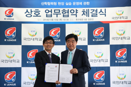 프로축구연맹이 국민대학교 체육대학과 산학협력형 현장실습 운영에 관한 업무협약을 체결했다.