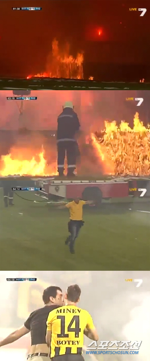 불가리아컵 경기 도중 그라운드에 불이 나 경기가 중단되는 황당한 사태가 발생했다. ⓒ유튜브