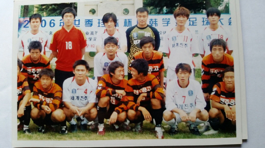 2007년 중국 전지훈련 중 상대팀 선수들과 기념사진을 찍고 있는 김영권(아랫줄 오른쪽에서 세번 째). 사진제공=강원길 전주공고 감독