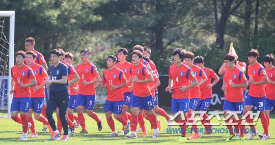 2014브라질월드컵 대표팀 선수들이 21일 파주 국가대표 트레이닝 센터에서 러닝으로 몸을 풀고있다. 30일 미국전지훈련을 떠나는 대표팀은 28일 튀니지를 상대로 국내 최종평가전을 치를 예정이다. 파주=최문영 기자 deer@sportschosun.com /2014.05.21/