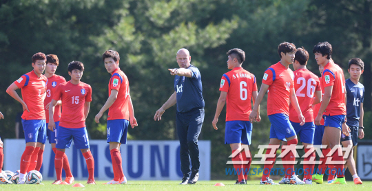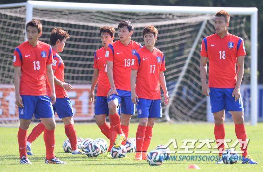 21일 파주NFC(국가대표팀 트레이닝 센터)에서 재개된 소집훈련의 초점은 '휴가 후유증 극복'이었다. 2박3일간 짧은 휴가를 다녀온 태극전사들을 위해 홍명보 월드컵대표팀 감독은 패스와 움직임, 슈팅을 동시에 소화할 수 있는 훈련 프로그램을 꺼내 들었다. 골키퍼를 포함한 5명이 한 조로 움직였다. 페널티박스 근처에서 한 명이 하프라인까지 롱패스를 넣어주면 나머지 3명이 짧은 패스를 주고 받으며 슈팅까지 연결하는 훈련이었다. 당연히 골문 앞을 지키고 있는 골키퍼를 넘어 득점까지 해야 한다.