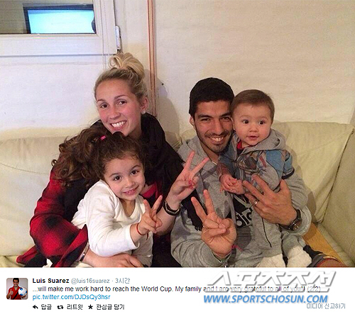 뜻하지 않은 무릎부상을 입은 루이스 수아레스(27·리버풀)이 가족과 함께 한 인증샷을 공개하며 월드컵 출전을 다짐했다.