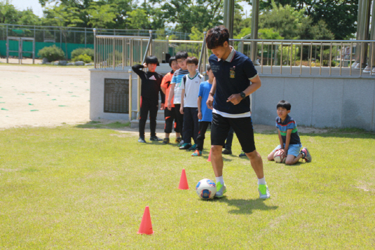 충주 험멜은 22일 충주시 동량면에 위치한 동량초등학교를 방문해 청소년 건강프로젝트를 진행했다. 이날 동량초를 방문한 충주험멜의 박태수 오태환은 동량초 5,6학년 학생들을 대상으로 드리블과 슈팅의 기본기를 전해주고, 학생들과 함께 미니게임을 진행하며 이날 프로그램을 마무리 했다.