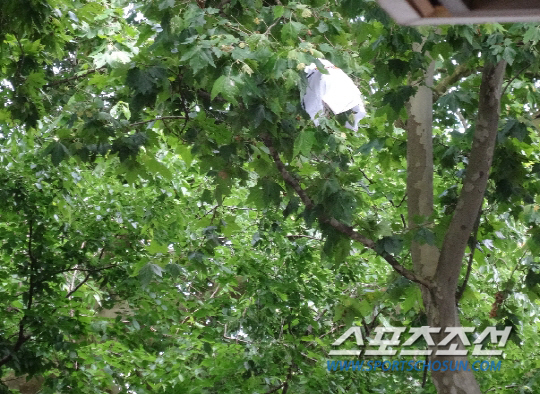 | 레알 마드리드 선수들이 팬들을 위해 던진 유니폼이 나무에 걸렸다. 리스본(포르투갈)=김장한 통신원 |