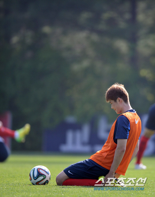 22일 오후 파주 국가대표 트레이닝 센터(NFC)에서 2014브라질월드컵 대표팀 선수들의 훈련이 열렸다. 훈련에서 기성용이 스트레칭을 하고 있다. 30일 미국전지훈련을 떠나는 대표팀은 28일 튀니지를 상대로 국내 최종평가전을 치를 예정이다. 파주=김경민 기자 kyungmin@sportschosun.com / 2014.05.22.
