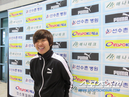 지난 1월 첼시레이디스 입단을 확정한 후 3개월만에 한국땅을 밟았다. 어머니 김애리씨가 꽃다발을 건네며 딸을 반겼다. 지소연은 베트남여자축구아시안컵 직전 잉글랜드여자축구 FA컵 아스널과의 준결승에서 왼쪽 팔꿈치를 다쳤다. 아시안컵 조별리그 최종전 중국전에선 상대 수비수와 공중볼을 다투다 그라운드에 쓰러졌다. 뇌진탕 증세를 호소했다. 잉글랜드 복귀후 25일 리그 경기에 나서지 못했다. 첼시레이디스 구단 측은 지소연의 빠른 회복을 위해 조기귀국을 권했다. 리그 휴식기를 맞아 5월31일 귀국 예정이었던 지소연이 사흘 먼저 귀국했다. 부상에도 불구하고 여전히 씩씩했다. "3주 정도 한국에 머물면서 재활과 치료를 병행할 생각이다. 영국에 돌아가면 곧바로 시즌이 다시 시작되기 때문에 몸을 잘 만들어갈 것"이라고 말했다.