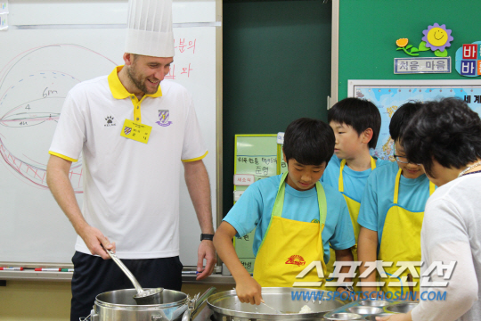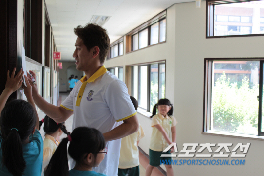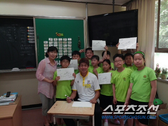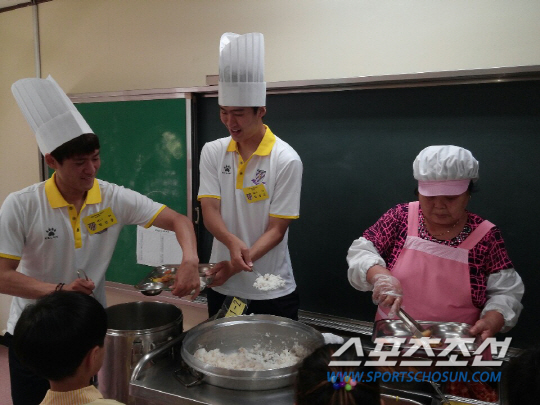 선수들은 정성스럽게 준비한 점심식사를 배식 손수레에 싣고 각 교실에 찾았다. 점심시간, 깜짝방문한 선수들을 본 어린학생들은 환호성을 지르며 선수들을 반겼다. 선수들 역시 즐거운 표정이 역력했다. 밥, 반찬을 퍼주며, 어린이들에게 일일히 따뜻한 인사를 전했다. 배식 봉사를 끝낸 후엔 각 반별로 사인회와 포토타임을 가지며 즐거운 시간을 보냈다.