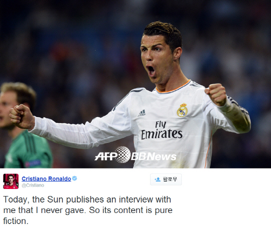 크리스티아누 호날두(레알 마드리드)가 29일(이하 한국시각) 영국 신문에 게재된 인터뷰가 사실이 아니라고 30일 SNS를 통해 알렸다.