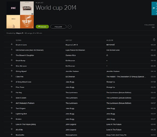 루니는 29일 자신의 트위터를 통해 '내 월드컵 2014 앨범이다. 모든 이들과 함께 즐기고 싶다'는 메시지와 함께 자신이 직접 고른 곡들의 플레이리스트를 올렸다.