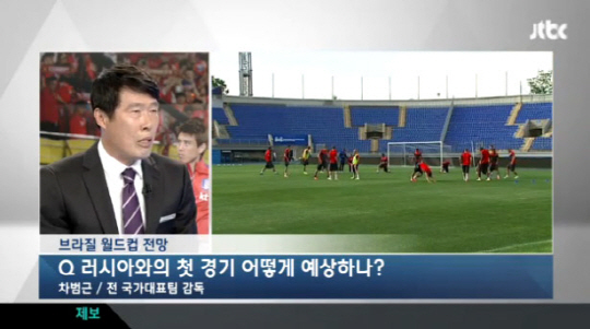 지난 30일 방송된 JTBC '뉴스9'에서는 브라질 월드컵을 2주 앞두고 차범근 전 감독을 초대해 브라질 월드컵을 전망해보는 인터뷰를 가졌다.