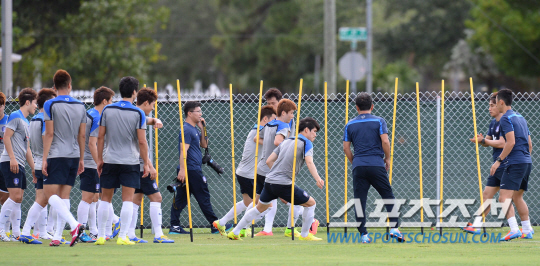 홍명보 감독이 이끄는 월드컵대표팀은 1일 오후 10시(한국시각) 미국 마이애미의 세인트토마스대학 운동장에서 1시간 가량 몸을 풀었다. 현지시각 오후였던 전날 마이애미 전지훈련 첫날 일정을 소화한 홍명보호는 이튿날 오전 식사를 마치고 다시 운동장에 나와 굵은 땀을 흘렸다.