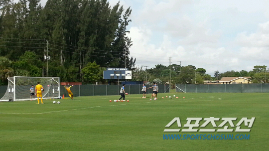 김 코치는 1일 밤(한국시각) 마이애미의 세인트토마스대학 운동장에서 진행된 월드컵대표팀 두 번째 훈련에서 스킬볼(Skill Ball)로 골키퍼들을 조련했다. 왼쪽 무릎에 테이핑까지 했다. 작정을 하고 훈련장에 나섰다. 이윽고 분홍색 스킬볼로 직접 슈팅을 날리기 시작했다. 세심하게 볼의 각도를 조정하고 구석구석을 노리는 슛은 필드플레이어 못지 않았다.