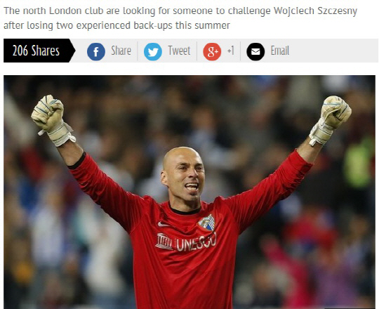 아스널이 말라가의 골키퍼 윌리 카바에로 영입을 노리고 있다.