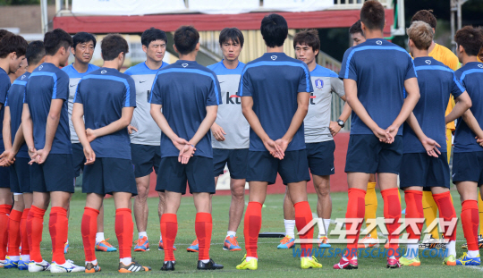 3일(한국시각) 미국 마이애미의 세인트토마스대학 운동장에서 진행된 월드컵대표팀 훈련. 1시간30분 가량의 훈련을 마친 홍명보호가 센터서클에 둥글게 모였다. 공기가 달랐다. 앞선 세 차례 훈련에서 간단한 전달사항과 다짐을 나누고 헤어졌다. 그러나 이날은 대화가 좀처럼 끊기지 않았다. 홍명보 월드컵대표팀 감독과 코칭스태프들이 자리를 떠난 뒤에도 '캡틴' 구자철(25·마인츠)이 나서서 선수들과 한동안 대화를 나눴다. 손흥민(22·레버쿠젠)은 "좀 더 열심히 훈련을 하자는 취지였다"고 설명했으나, 구체적으로 대화 내용을 밝히진 않았다.