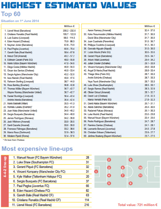 이 보고서는 시장 가치를 기준으로 세상에서 가장 비싼 라인업을 짜기도 했다.