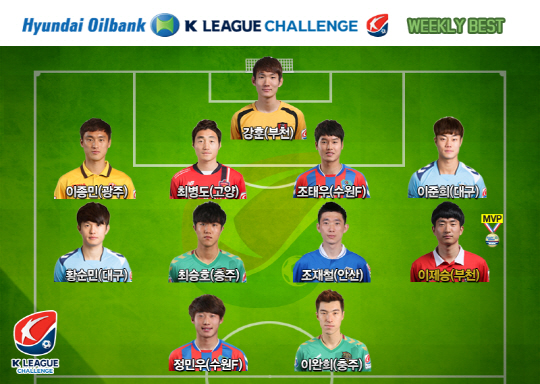 12라운드 최고의 공격수 자리는 안양전에서 1골-1도움을 기록하며 수원FC에 3대1 승리를 선사한 '겁없는 신인' 정민우(수원FC)와 이완희(충주)가 차지했다. 조재철(안산) 최승호(충주) 황순민(대구)은 최고의 미드필더로, 이준희(대구) 조태우(수원FC) 최병도(고양) 이종민(광주)은 12라운드 최고의 활약을 펼친 수비수로 이름을 올렸다. 최고의 수문장은 부천의 골키퍼 강 훈이었다.