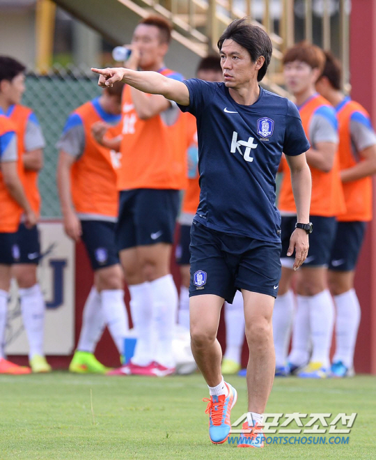 2014브라질월드컵 대표팀 홍명보 감독이 1일(한국시간) 미국 마이애미 전지훈련장인 세인트토마스대학교 경기장에서 전술훈련을 지도하고 있다. 브라질에 들어가기 전 시차와 고온의 기후 등을 적응하기 위해 마이애미에 훈련캠프를 차린 대표팀은 다음달 9일까지 적응훈련을 마친후 10일 가나와 최종 평가전을 마치고 브라질로 떠난다. 마이애미(미국)=최문영 기자 deer@sportschosun.com /2014.06.01/
