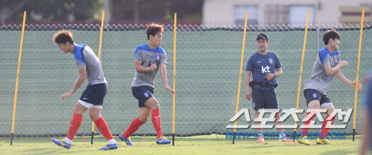 2014브라질월드컵 대표팀이 8일(한국시간) 미국 전지훈련장인 마이애미 세인트토마스 대학교에서 9일째 훈련을 진행했다. 박주영과 김창수가 장대를 피하며 순발력 훈련을 하고있다.