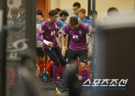 [월드컵포토] 좁은실내에서 몸푸는 태극전사들