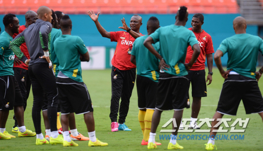 2014브라질월드컵 가나대표팀 퀘시 아피아 감독이 한국대표팀과의 평가전을 하루 앞둔 9일오전 한국시간) 마이애미 선라이프 스타디움에서 선수들의 훈련을 지도하고 있다.