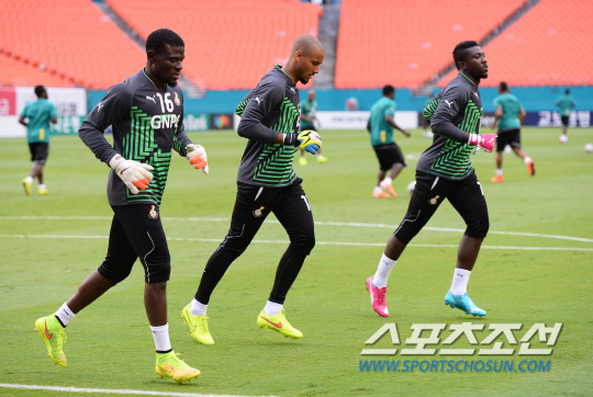 2014브라질월드컵 가나대표팀 골키퍼들이 한국대표팀과의 평가전을 하루 앞둔 9일오전 한국시간) 마이애미 선라이프 스타디움에서 적응훈련을 하고 있다.