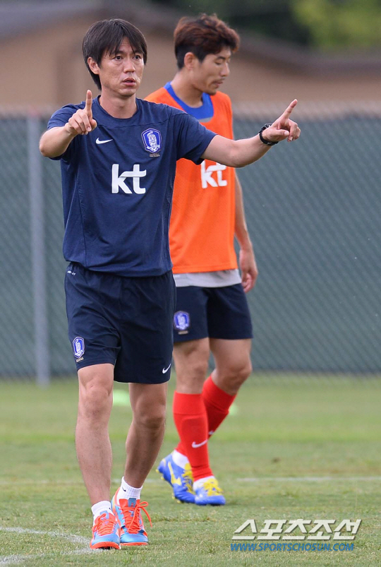2014브라질월드컵 대표팀이 8일(한국시간) 미국 전지훈련장인 마이애미 세인트토마스 대학교에서 9일째 훈련을 진행했다. 대표팀 홍명보 감독이 공격훈련을 지도하고 있다. 브라질에 들어가기 전 시차와 고온의 기후 등을 적응하기 위해 마이애미에 훈련캠프를 차린 대표팀은 9일까지 적응훈련을 마친후 10일 가나와 최종 평가전을 마치고 브라질로 떠난다. 마이애미(미국)=최문영 기자 deer@sportschosun.com /2014.06.08/