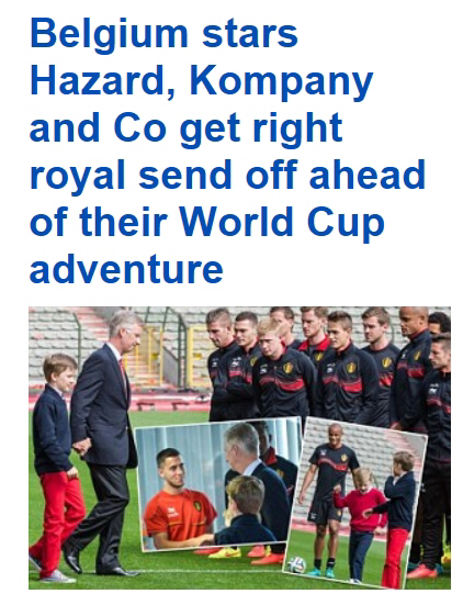 주장 뱅상 콤파니를 비롯, 에당 아자르, 마루안 펠라이니, 아드낭 야누자이 등 프리미어리그 출신 벨기에 대표팀 스타들이 '국왕 폐하'로부터 직접 행운의 메시지를 받아들었다. 콤파니는 왕자, 공주들과 함께 볼을 차며 '원포인트 레슨' 시간도 가졌다.