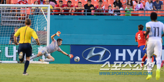 2014브라질월드컵 대표팀 한국과 가나의 평가전이 10일 오전(한국시간) 마이애미 선라이프 스타디움에서 열렸다. 한국의 골키퍼 정성룡이 가나의 기안에게 두번째 골을 허용하고 있다.