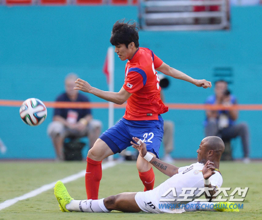 2014브라질월드컵 대표팀 한국과 가나의 평가전이 10일 오전(한국시간) 마이애미 선라이프 스타디움에서 열렸다. 한국 김창수가 가나의 수비수와 치열한 볼경합을 벌이고 있다. 미국에서 가나와 최종평가전을 치른 홍명보호는 12일 브라질에 입성해 월드컵을 향한 본격적인 행보를 이어간다. 마이애미(미국)=최문영 기자 deer@sportschosun.com