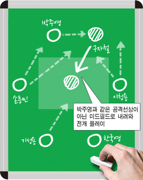 이런 부분은 기술적인 부분이 아니다. 자철이가 가진 감각이 되살아난다면 남은 기간까지 보완이 가능하다. 미드필드에서 패싱 플레이가 돼야 전방의 스리톱이 수비수들을 따돌리고 공간을 만들 수 있는 타이밍을 만들 수 있다. 타이밍을 만들어주면서 플레이를 해야 한다.