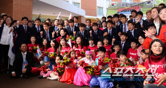 2014브라질월드컵 대표팀 홍명보호가 드디어 브라질에 입성했다. 홍명보호선수들이 12일오전 (한국시간) 브라질내 캠프가 위치한 이과수 버본호텔에 도착해 교민들의 환영을 받고 있다.