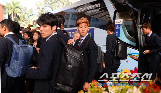 2014브라질월드컵 대표팀 홍명보호가 드디어 브라질에 입성했다. 홍명보호선수들이 12일오전 (한국시간) 브라질내 캠프가 위치한 이과수 버본호텔에 도착해 교민들의 환영을 받고 있다.