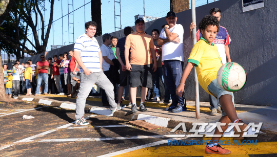 2014 브라질월드컵 대표팀이 12일 오전(한국시간) 브라질 캠프인 이과수의 플라멩고 스타디움에 도착해 첫 훈련에 돌입했다. 공개훈련을 지켜보기 위해 모여든 브라질 축구팬들이 경기장앞에 줄지어 있다.