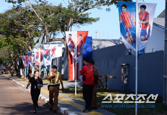 2014 브라질월드컵 대표팀이 12일 오전(한국시간) 브라질 캠프인 이과수의 플라멩고 스타디움에 도착해 첫 훈련에 돌입했다. 브라질 군인들이 대표팀의 훈련장을 삼엄하게 경계하고 있다.