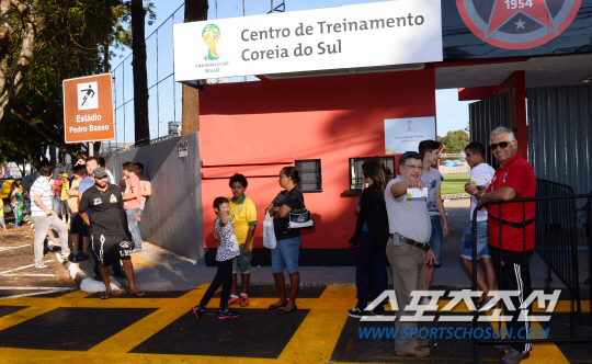 2014 브라질월드컵 대표팀이 12일 오전(한국시간) 브라질 캠프인 이과수의 플라멩고 스타디움에 도착해 첫 훈련에 돌입했다. 공개훈련을 지켜보기 위해 모여든 브라질 축구팬들이 경기장앞에 줄지어 있다.