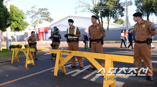 2014 브라질월드컵 대표팀이 12일 오전(한국시간) 브라질 캠프인 이과수의 플라멩고 스타디움에 도착해 첫 훈련에 돌입했다. 브라질 군인들이 대표팀의 훈련장을 삼엄하게 경계하고 있다.