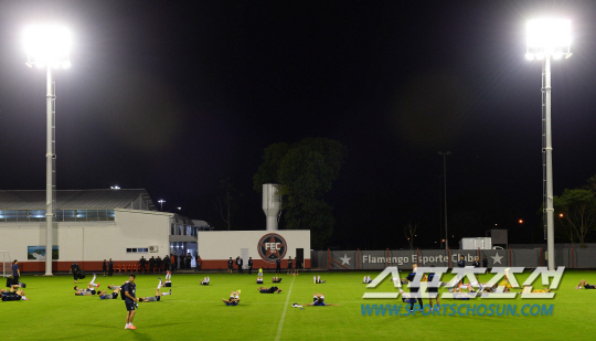 2014 브라질월드컵 대표팀이 12일 오전(한국시간) 브라질 캠프인 이과수의 플라멩고 스타디움에 도착해 첫 훈련에 돌입했다. 태극전사들이 2시간의 맹훈련을 마치고 스트레칭으로 몸을 풀고있다.