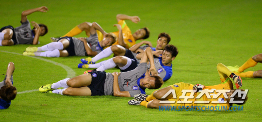2014 브라질월드컵 대표팀이 12일 오전(한국시간) 브라질 캠프인 이과수의 플라멩고 스타디움에 도착해 첫 훈련에 돌입했다. 2시간 동안의 맹훈련을 소화한 태극전사들이 스트레칭으로 마무리 하고있다.