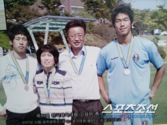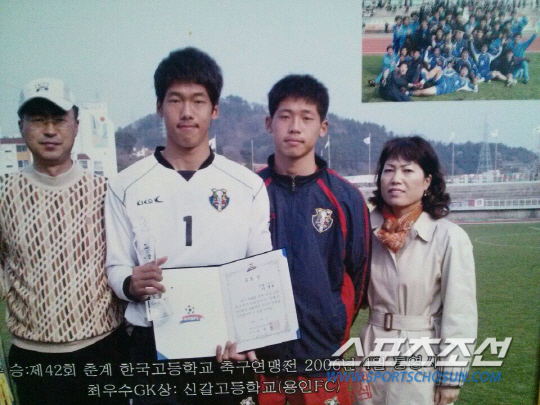 ◇이범영, 이범수가 뛰는 그라운드엔 언제나 헌신적인 부모님이 함께 했다. 2006년 춘계고등연맹전에서 우승과 함께 최우수골키퍼상을 받고 가족과 기념사진을 찍었다. 사진제공=이범영 가족