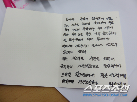 ◇장필규 신갈고 GK코치가 브라질월드컵을 준비하고 있는 제자 이범영을 향해 응원의 손편지를 띄웠다.