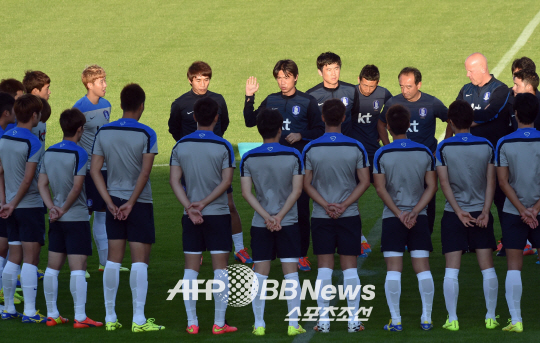 한국 월드컵대표팀이 12일 훈련에 앞서 미팅을 하고 있다.ⓒAFPBBNews = News1