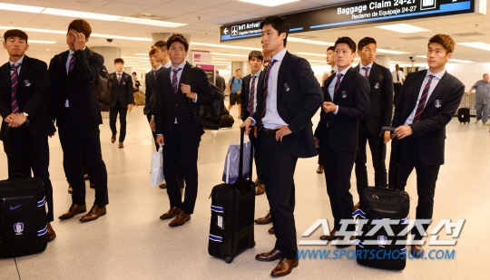활주로를 달려 출구에 접어든 비행기가 멈춰섰다. 2010년 남아공월드컵 당시 월드컵대표팀은 외부 승객보다 앞서 비행기에서 내려 입국 수속을 밟았다. 브라질에선 정반대였다. 모든 승객이 내리고 홍명보호가 가장 나중에 일어섰다. 훈련복에서 양복 차림으로 갈아 입은 선수들의 얼굴에는 설렘과 긴장이 교차했다.