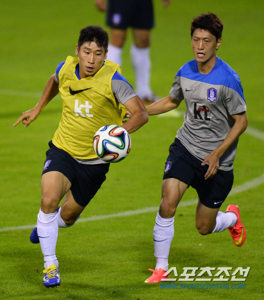 | 2014 브라질월드컵 대표팀이 12일 오전(한국시간) 브라질 캠프인 이구아수의 플라멩고 스타디움에 도착해 첫 훈련에 돌입했다. 이근호와 이청용이 패스훈련에 열중하고 있다. 이구아수(브라질)=최문영 기자 deer@sportschosun.com /2014.06.12/ |