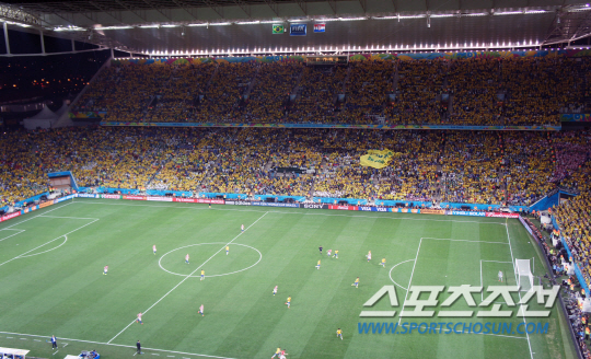 상파울루 아레나 코린치안스 스타디움도 노란색 일색이었다. 크로아티아를 응원하는 팬들이 듬성듬성 자리했을 뿐, 6만 2000여 관중석이 꽉 들어찬 스타디움은 모두 노란색으로 동색이었다.