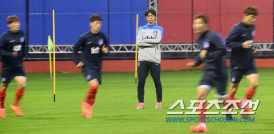 2014 브라질월드컵 홍명보호가 14일 오전(한국시간) 브라질 훈련 캠프인 이구아수 플라멩고 경기장에서 3일째 훈련에 돌입했다. 홍명보 감독이 태극전사들의 훈련모습을 지켜보고 있다.