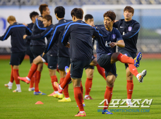 2014 브라질월드컵 홍명보호가 14일 오전(한국시간) 브라질 훈련 캠프인 이구아수 플라멩고 경기장에서 3일째 훈련에 돌입했다. 태극전사들이 가벼운 스트레칭으로 훈련을 시작하고 있다.